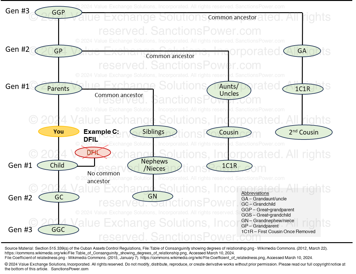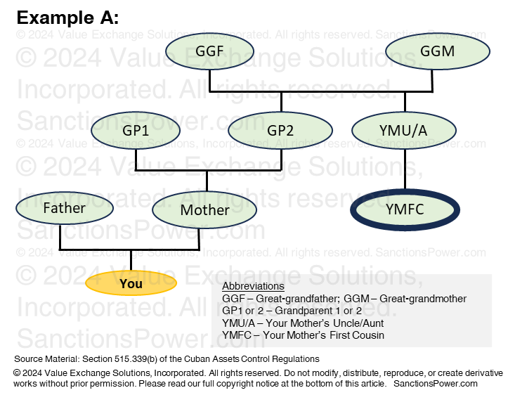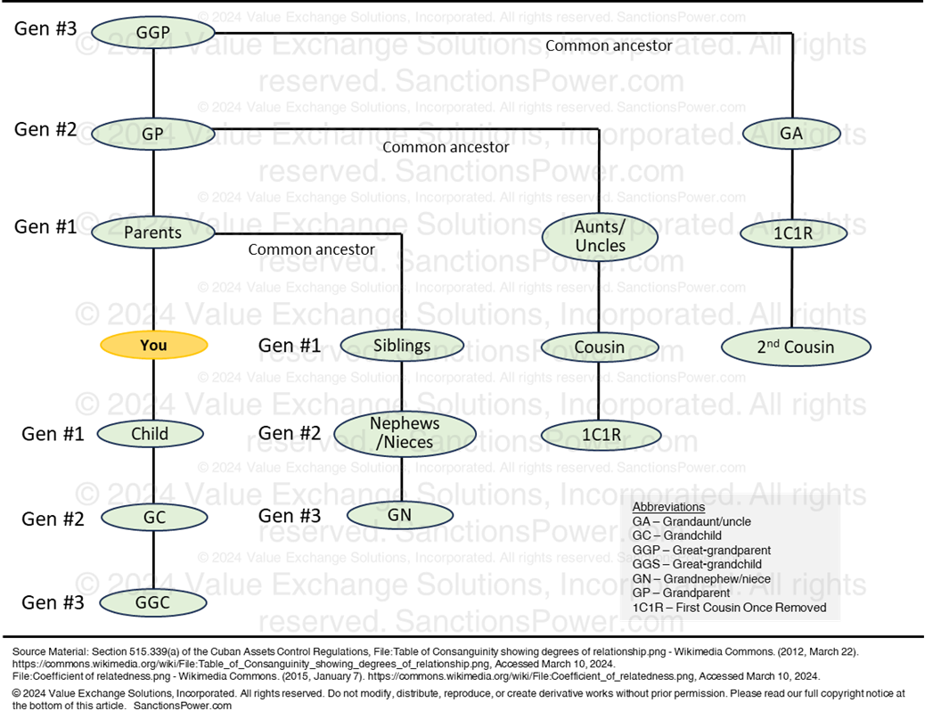 Section 515.339 of the Cuban Assets Control Regulations, located at eCFR :: 31 CFR 515.339 -- Close relative. Accessed March 10, 2024.